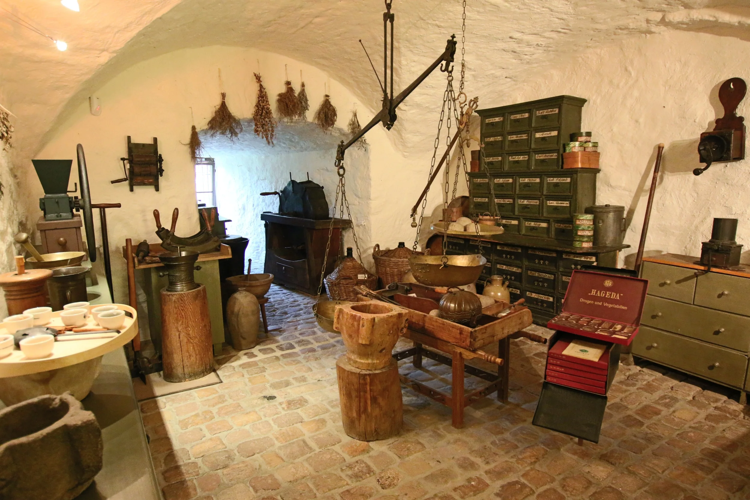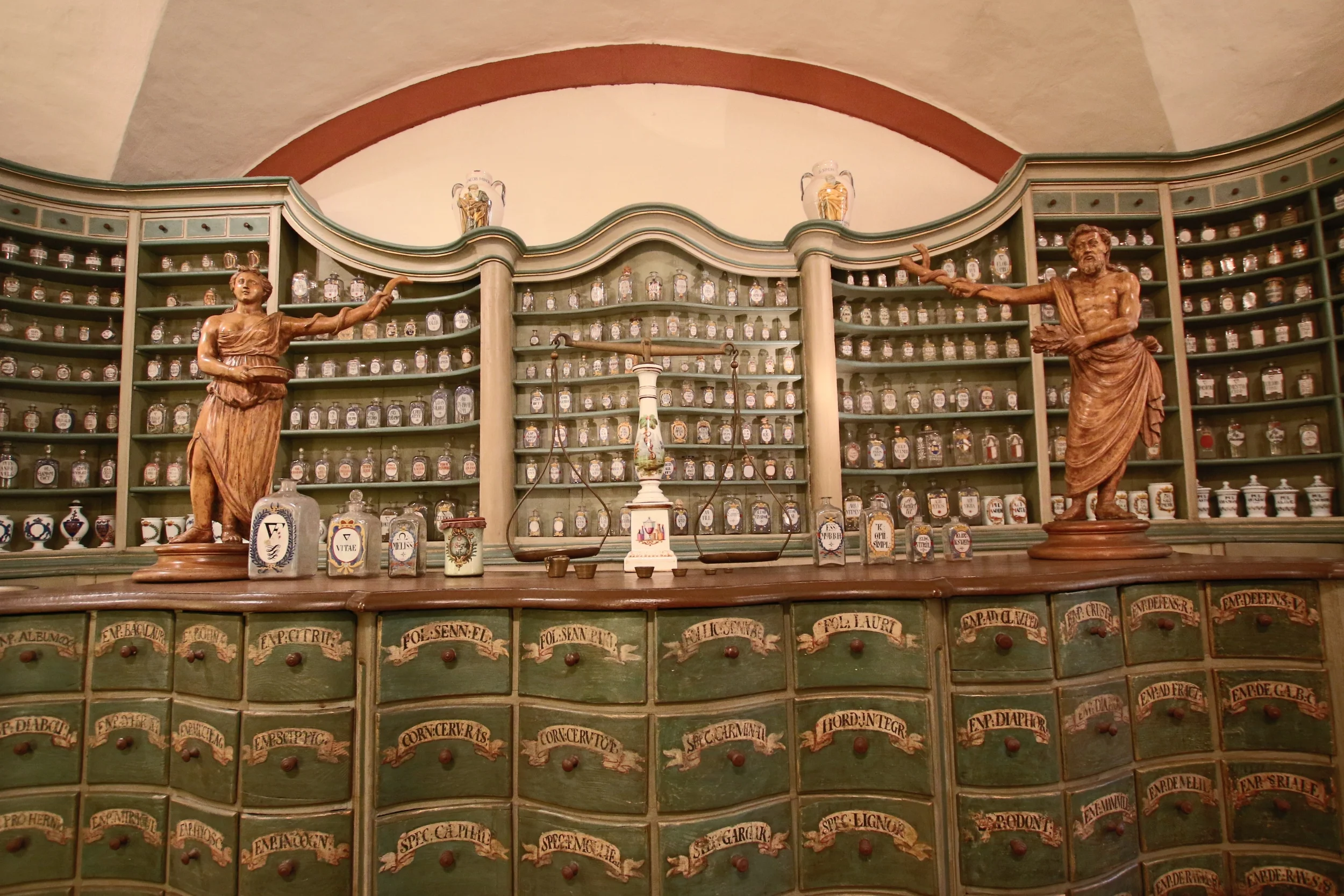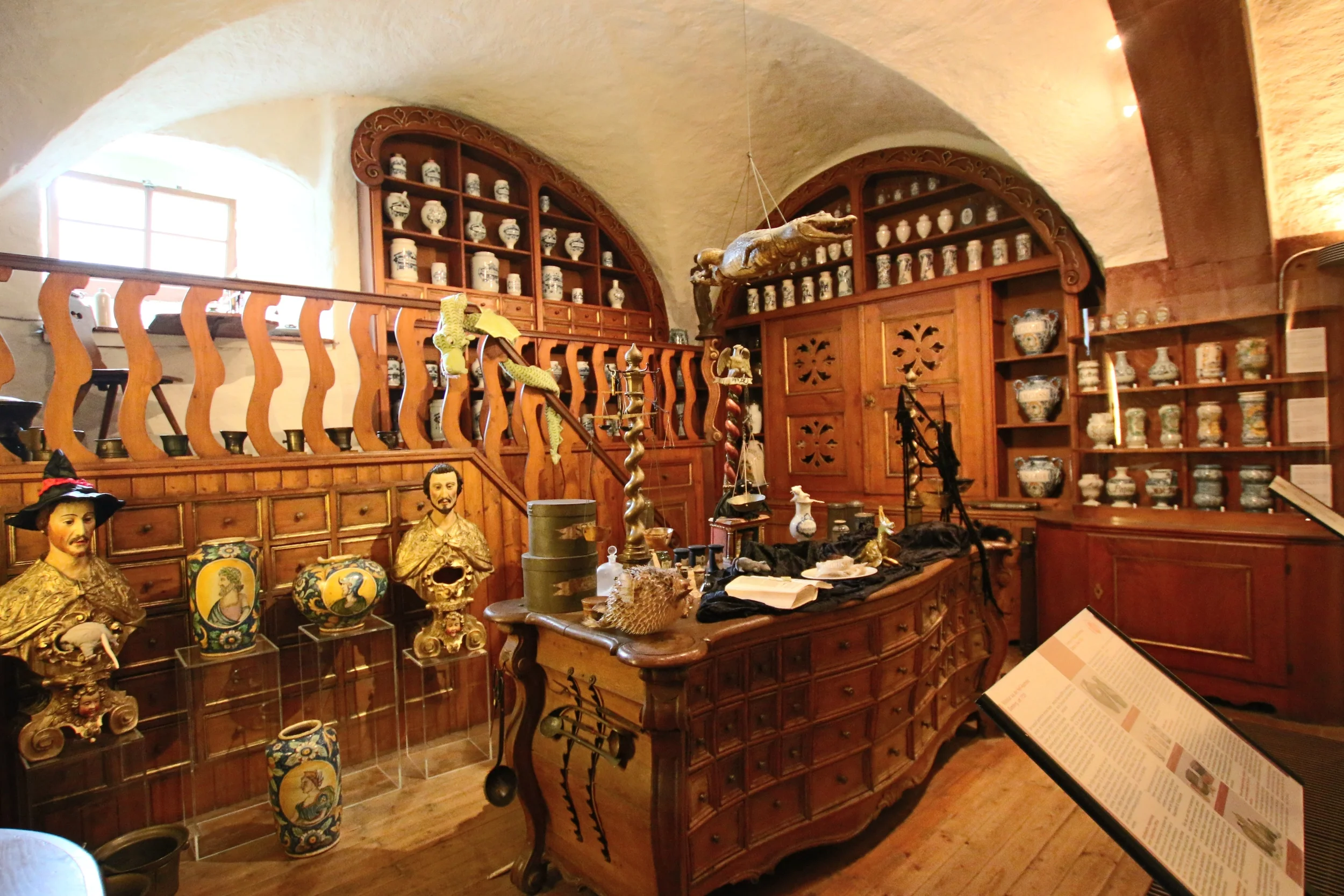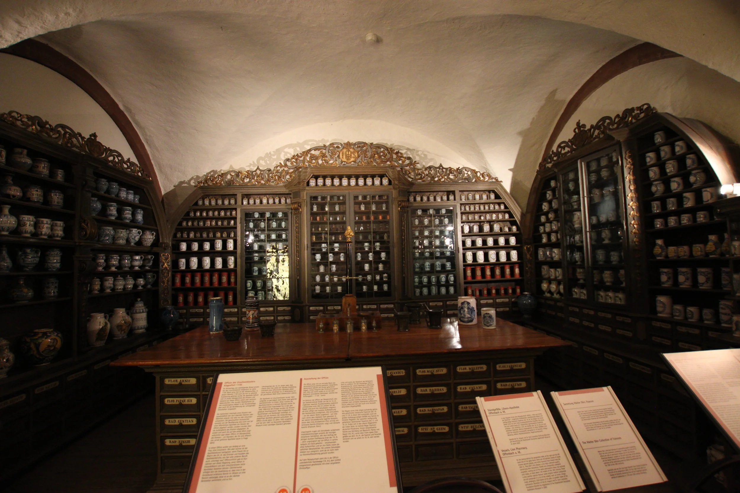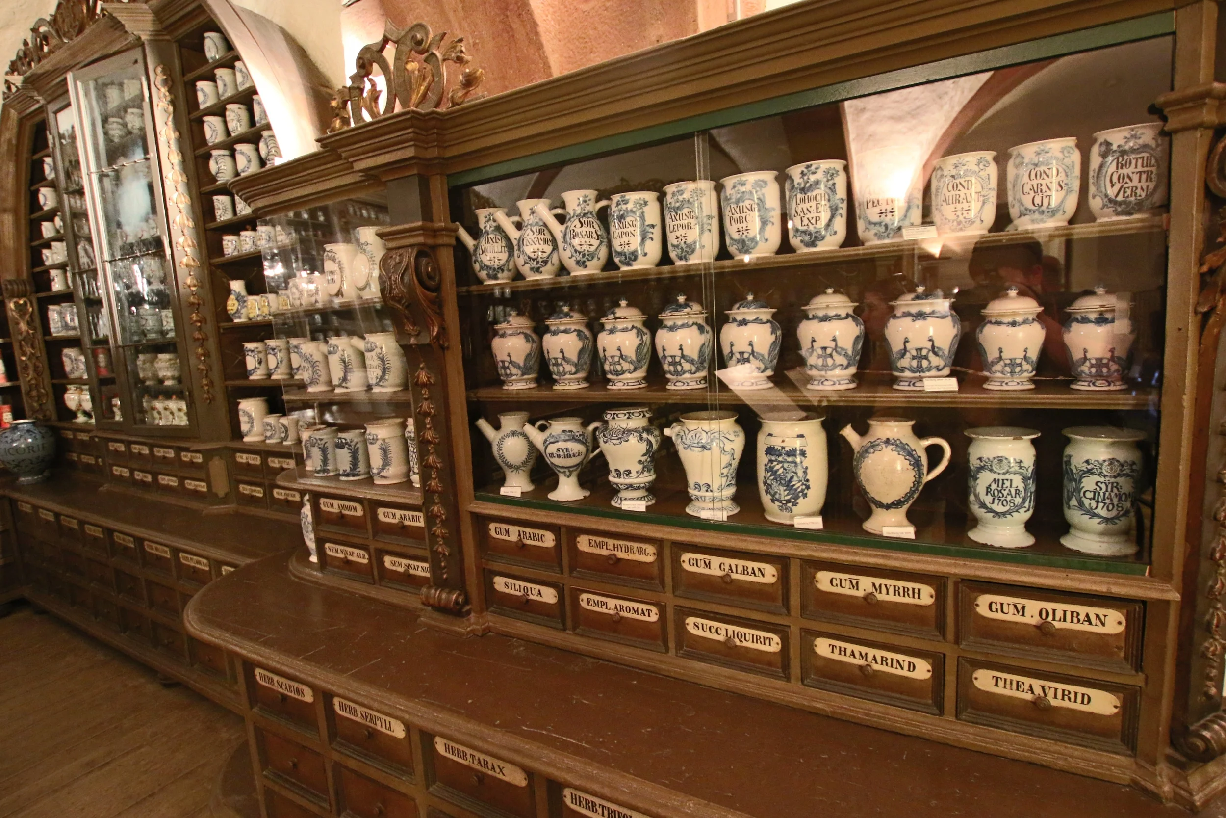 /Within the walls of the Heidelberg Castle is an Apothecary Museum. So, obviously, being the lover of museums that I am (and really cool doors, but that's another story for another day), I insisted that we go in. We breezed through it pretty quickly. There were quite a few people and I didn't spend a lot of time reading the little information signs, which is highly unusual for me, but there were quite a few cool artifacts, like this fully-stocked replica of a couple-hundred year old apothecary.