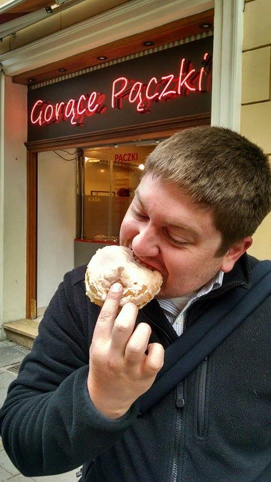 aaron eating his Paczki. He was much more civil about it, I gobbled mine down.