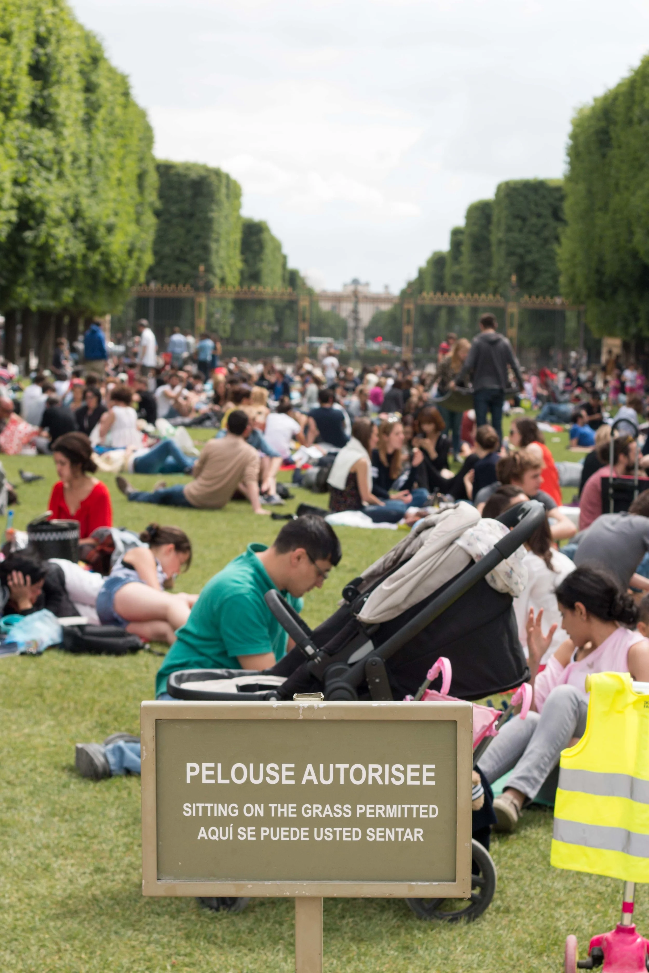 These gardens are HUGE! We were there on a Sunday and discovered that Parisians like to do the same things as the Germans on Sundays: relax outside. There were hundreds of people picnicking, playing with their kids, sunning, reading a book, or having a bottle of wine in the gardens. The main thuroughfare has three sets of lawns. The ones on the sides have signs posted that sitting on the grass is not allowed, but the middle one, sitting on the grass was allowed. And people were taking full advantage of it!