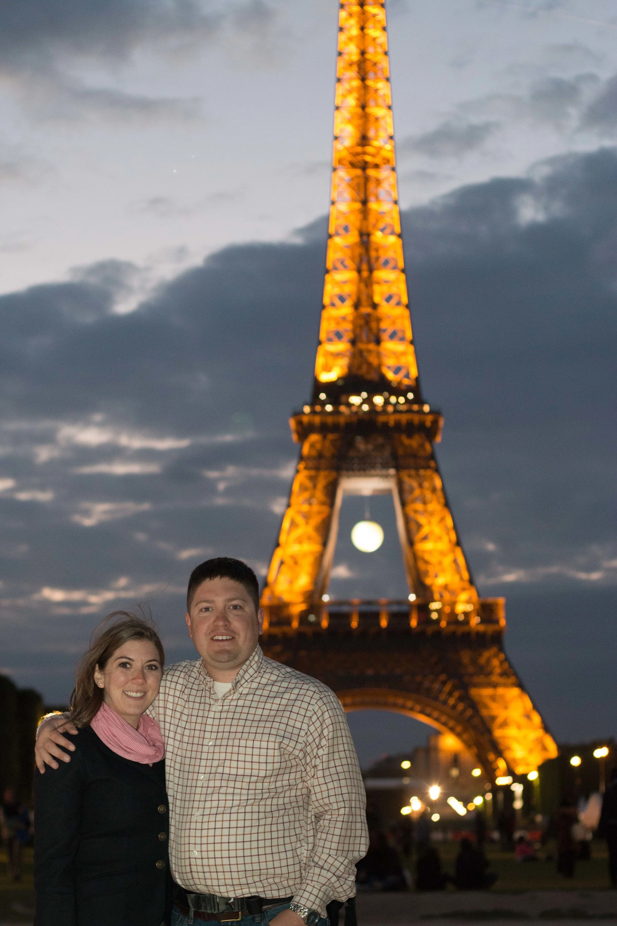Aaron and I with the Eiffel Tower. It was kind of windy, and cold.